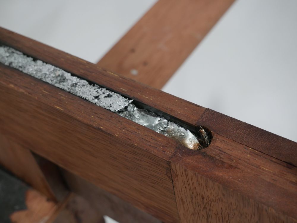 Made from old wooden doors and joints made by casting zamac into grooves and holes in the wood.…